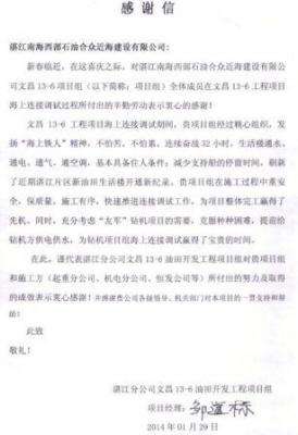 2014年湛江合眾公司潿洲項目感謝